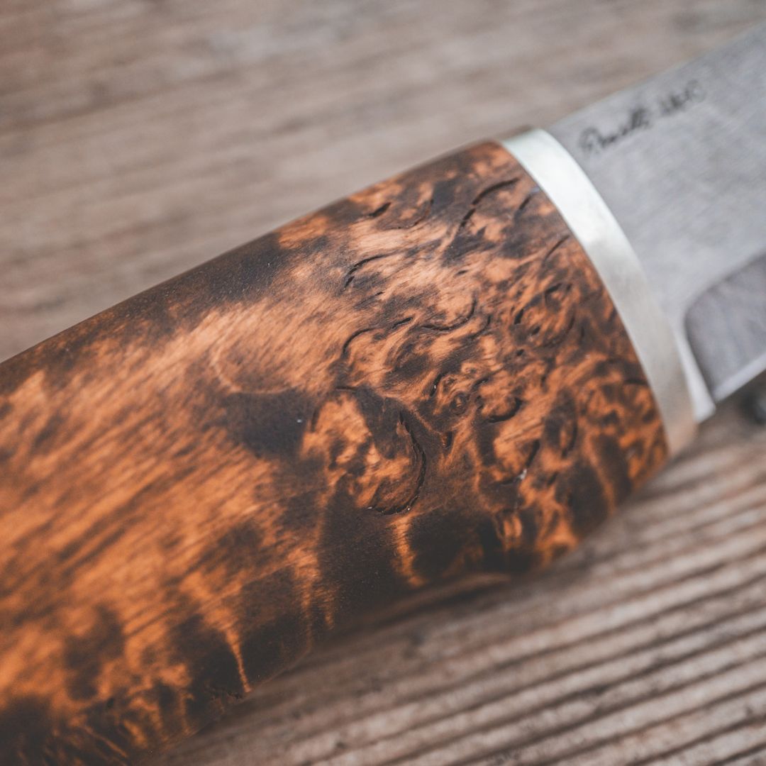 Curly birch is a highly sought-after material for knife handles due to its stunning and unique grain pattern. At Roselli, we use only premium curly birch to ensure that our knife handles meet the highest standards of quality and aesthetics. This results in handles that feature an intense, eye-catching marbling, along with natural characteristics such as small cracks, pores, and holes. In this post, we explain why these features occur, how they affect the functionality of the knife, and how to best care for your handle.