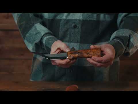 This Finnish handmade hunting and outdoor knife was originally developed as a hunting knife for moose hunters in Finland and quickly became the perfect companion for handling larger game such as moose, wild boar and larger deer. The design and profile of the blade makes it excellent for skinning game.