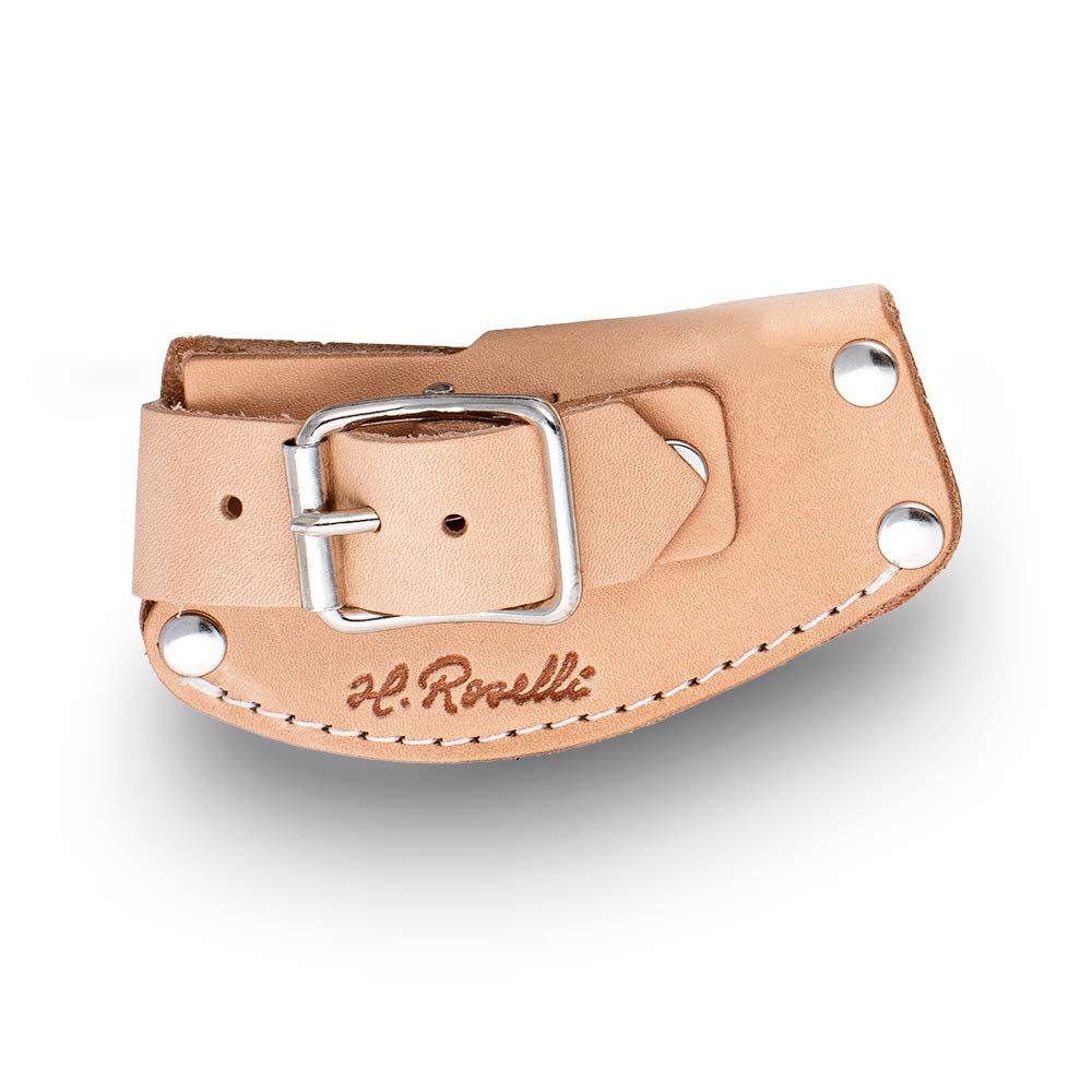 Handmade axe sheath of naturally tanned Finnish leather for high quality and environmental considerations. With a practical loop for easy attachment to belt or backpack. Fits all Roselli-axes.